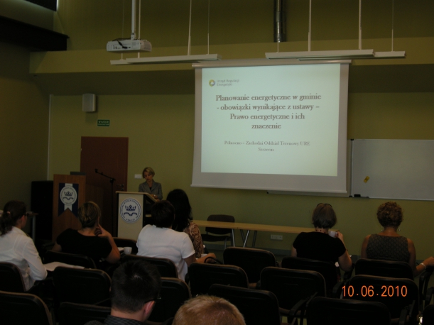 W dniach 8-11 czerwca 2010 r. odbyły się kolejno w Szczecinie, Koszalinie, Wałczu i Pyrzycach warsztaty szkoleniowe z zakresu gminnego planowania energetycznego organizowane przez Urząd Marszałkowski Województwa Zachodniopomorskiego, przy współpracy Urzędu Regulacji Energetyki, firmy PREDA i Podkarpackiej Agencji Energetycznej. W Warsztatach wzięło udział 70 przedstawicieli samorządów gminnych i URE. Warsztaty dzieliły się na część wykładową oraz część ćwiczeniową przy komputerach.